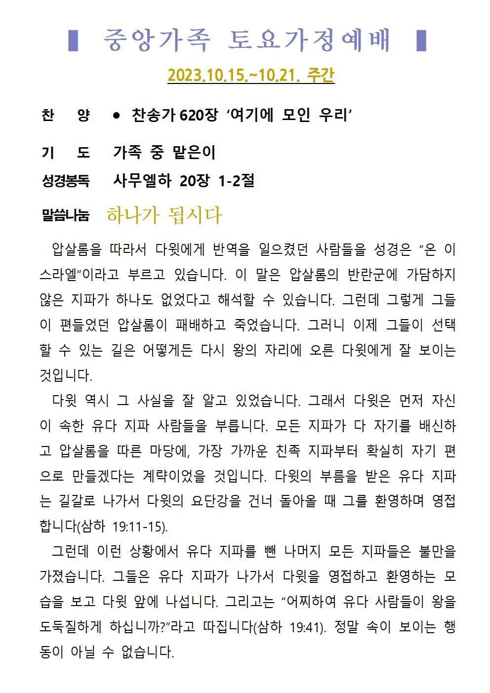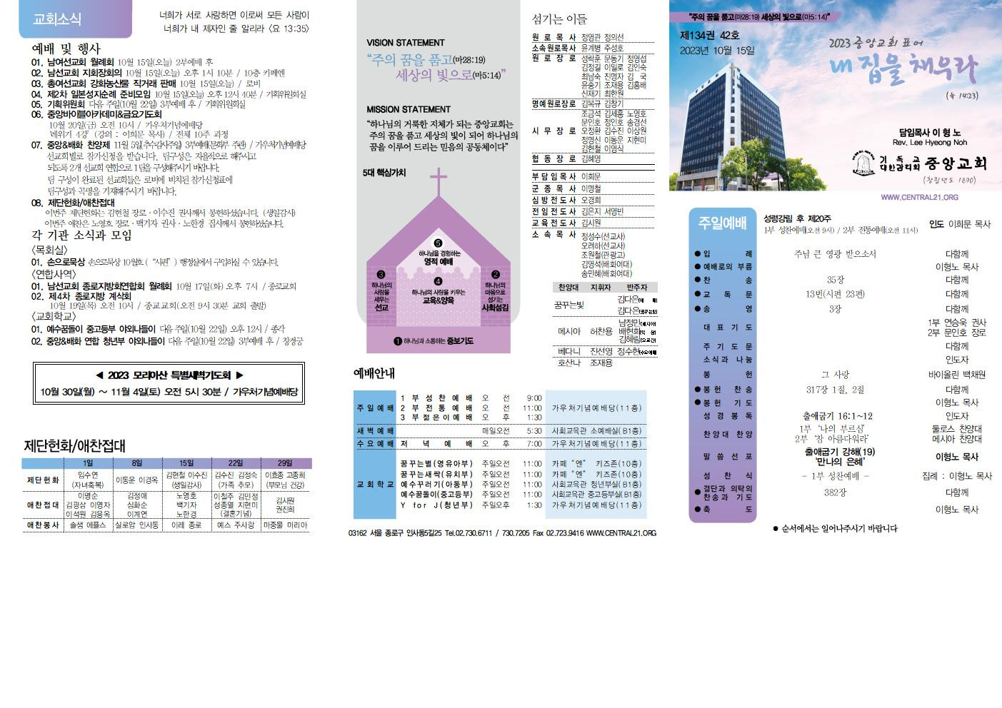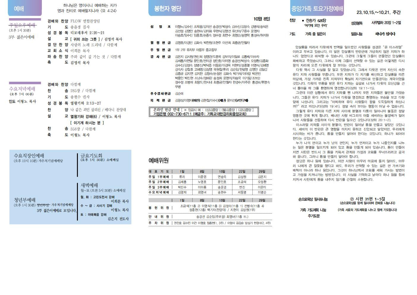교회소식 교회소식주보 교회소식 주보 교회소식주보 2023년 10월 15일 주일 주보 주보 2023-10-13 김은지 첨부파일 2023주보썸네일.jpg 중앙가족 가정예배서 20231015002.jpg 중앙가족 가정예배서 20231015001.jpg 중앙새주보_231015001.jpg 중앙새주보_231015002.jpg 목록 이전 :: 2023년 10월 8일 주일... 2023년 10월 22일 주... :: 다음