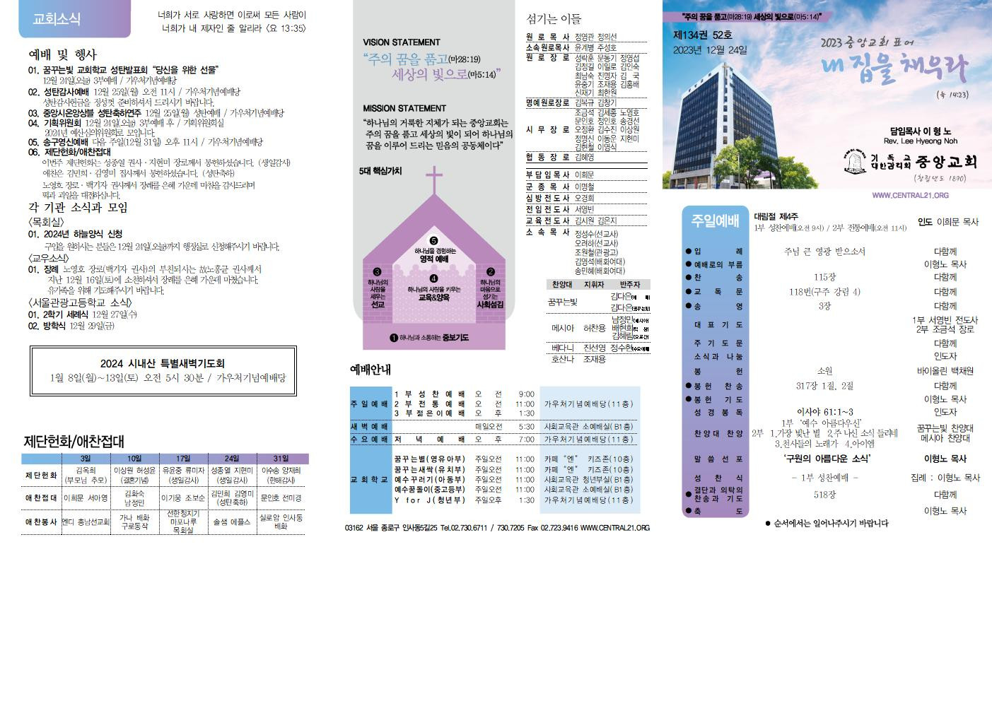 교회소식 교회소식주보 교회소식 주보 교회소식주보 2023년 12월 24일 주일 주보 주보 2023-12-22 김은지 첨부파일 2023주보썸네일.jpg 중앙가족 가정예배서 20231224002.jpg 중앙새주보_231224001.jpg 중앙가족 가정예배서 20231224001.jpg 중앙새주보_231224002.jpg 목록 이전 :: 2023년 12월 17일 주... 2023년 12월 31일 주... :: 다음