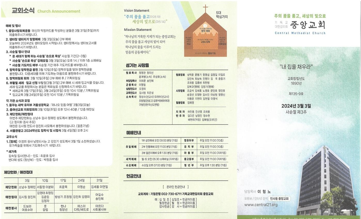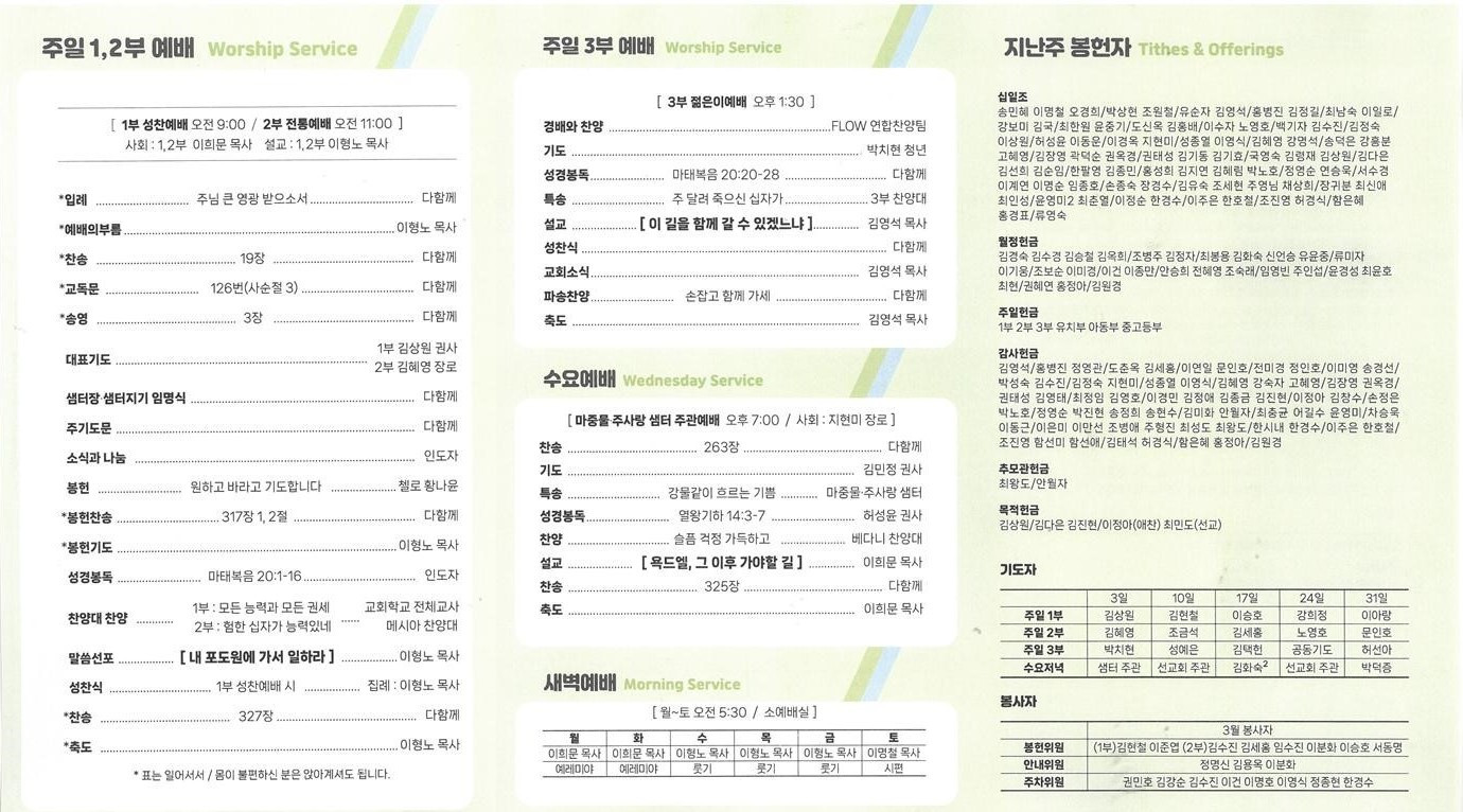 교회소식 교회소식주보 교회소식 주보 교회소식주보 2024년 3월 3일 주일 주보 주보 2024-03-02 오려하 첨부파일 2403031001.jpg 240303001.jpg 목록 이전 :: 2024년 2월 25일 주일... 2024년 3월 10일 주일... :: 다음