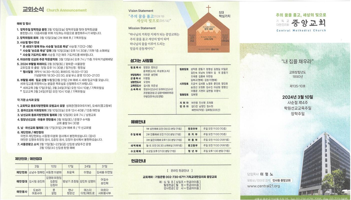 교회소식 교회소식주보 교회소식 주보 교회소식주보 2024년 3월 10일 주일 주보 주보 2024-03-08 오려하 첨부파일 20240310001.jpg 2024031011001.jpg 목록 이전 :: 2024년 3월 3일 주일... 2024년 3월 17일 주일... :: 다음