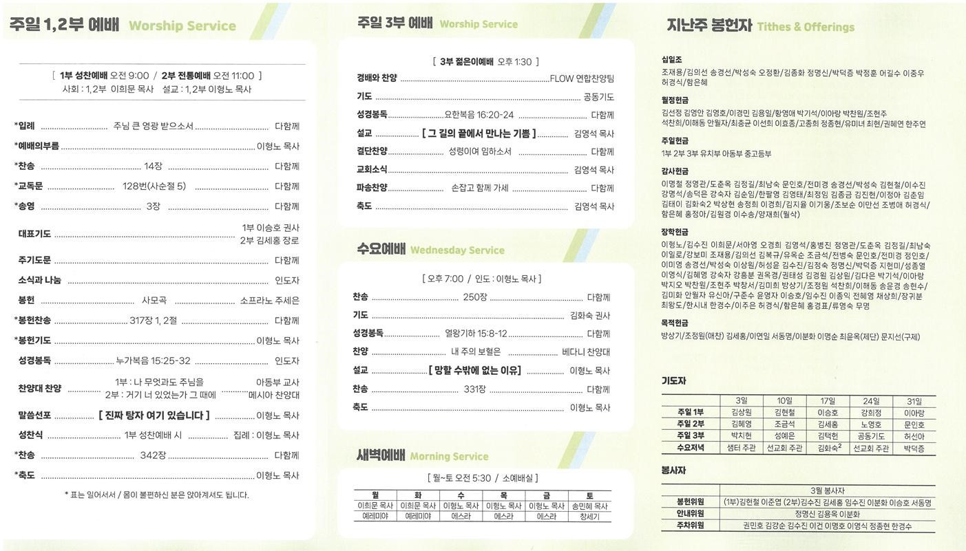 교회소식 교회소식주보 교회소식 주보 교회소식주보 2024년 3월 17일 주일 주보 주보 2024-03-15 오려하 첨부파일 2403172001.jpg 240317001.jpg 2403172001.jpg 목록 이전 :: 2024년 3월 10일 주일... 2024년 3월 24일 주일... :: 다음
