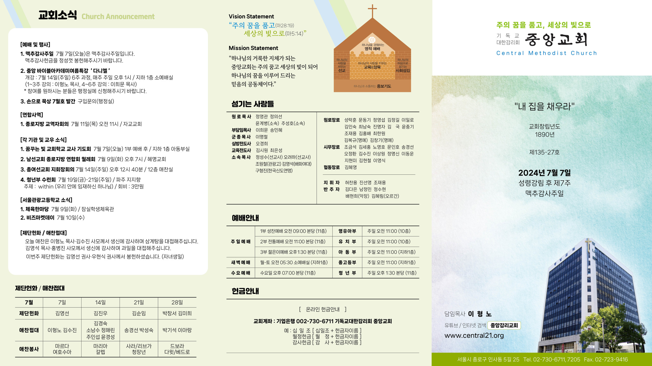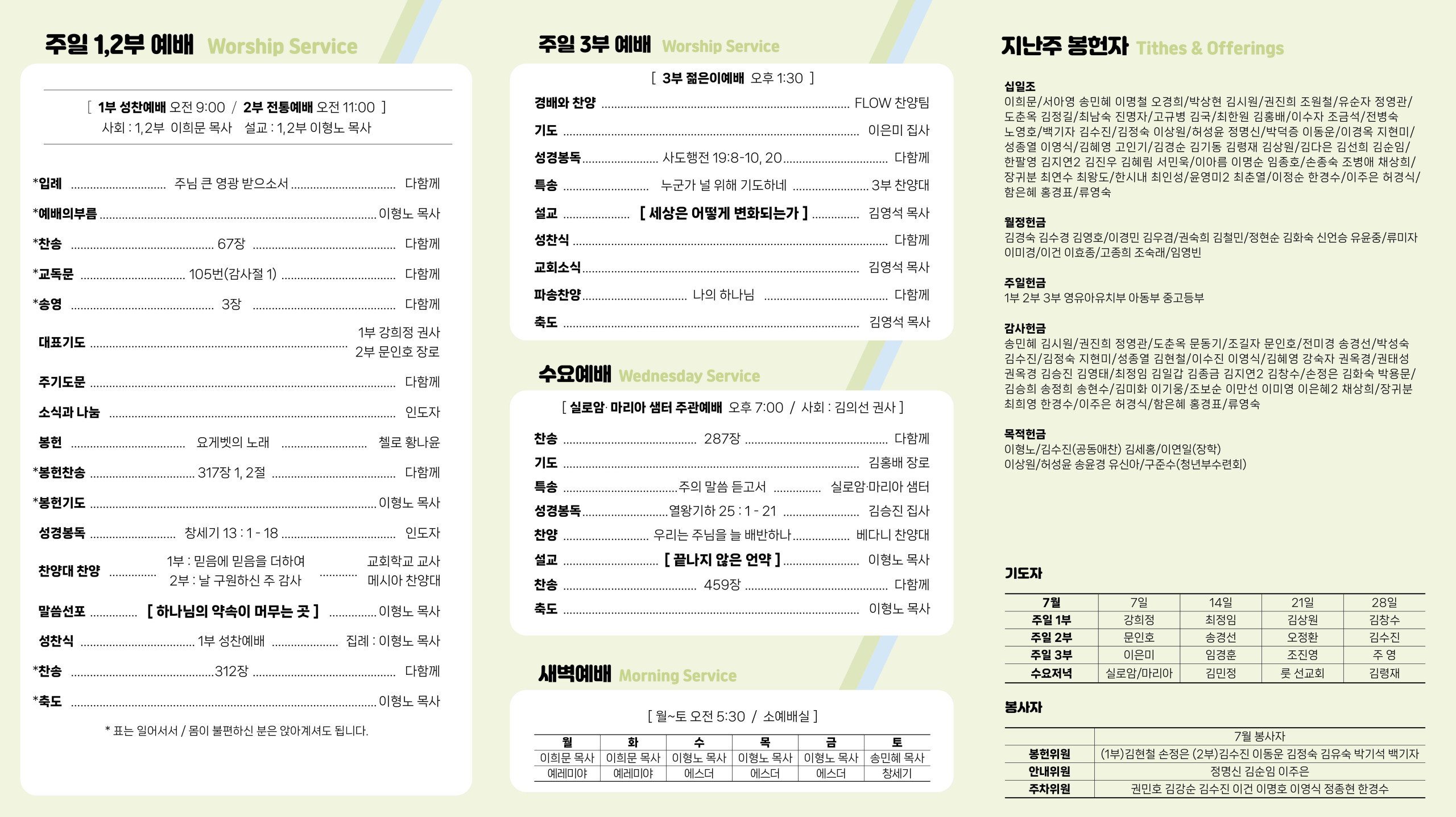 교회소식 교회소식주보 교회소식 주보 교회소식주보 2024년 7월 7일 주일 주보 2024-07-05 오려하 첨부파일 KakaoTalk_20240705_155023786.jpg KakaoTalk_20240705_155030707.jpg 목록 이전 :: 2024년 6월 30일 주일 2024년 7월 14일 주일 :: 다음