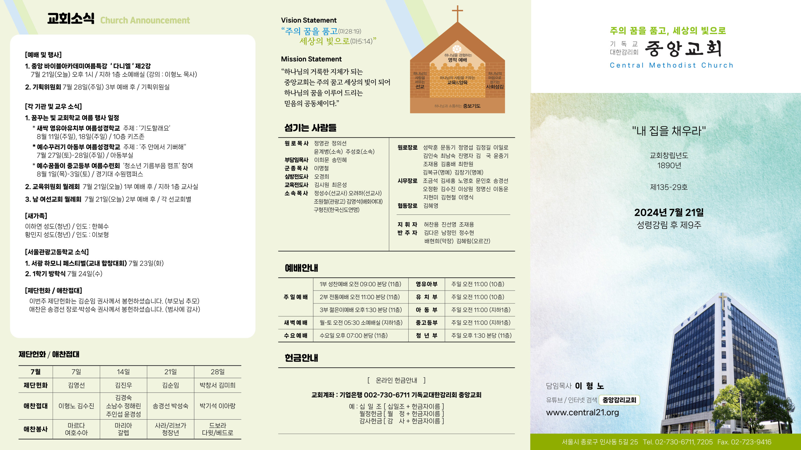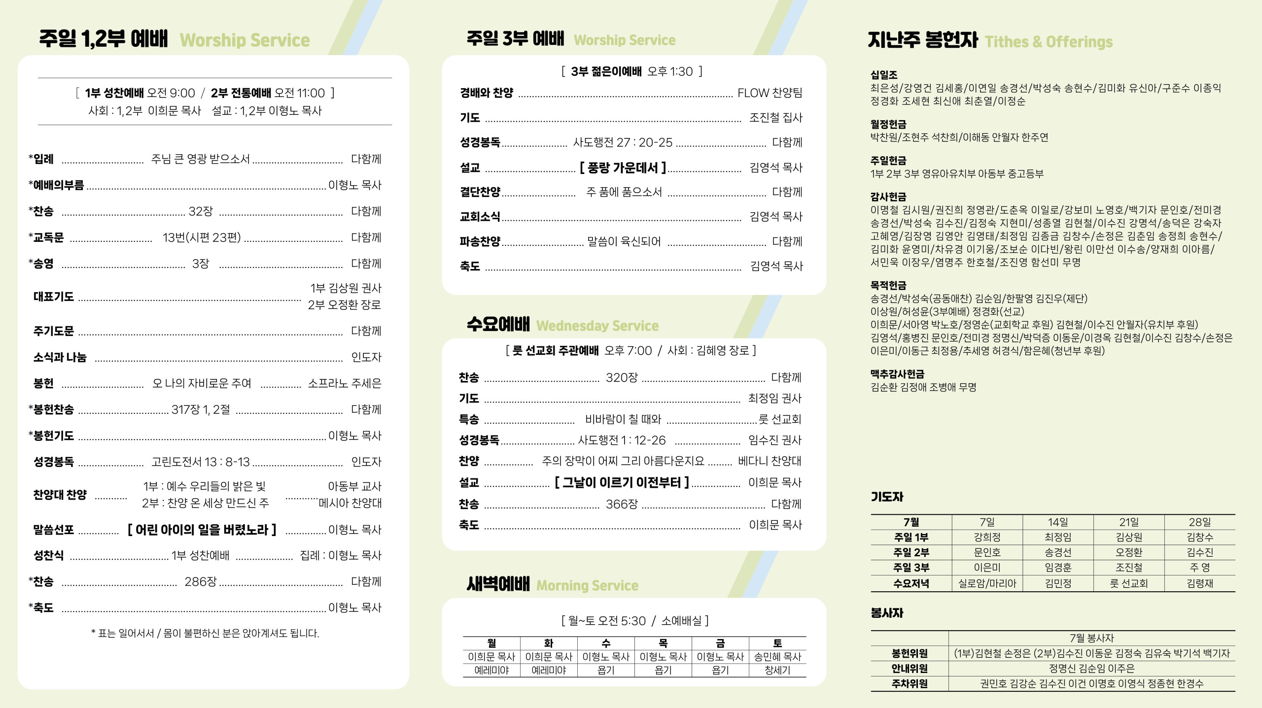 교회소식 교회소식주보 교회소식 주보 교회소식주보 2024년 7월 21일 주일 주보 2024-07-20 오려하 첨부파일 KakaoTalk_20240720_114111190.jpg KakaoTalk_20240720_114125019.jpg 목록 이전 :: 2024년 7월 14일 주일 2024년 7월 28일 주일 :: 다음