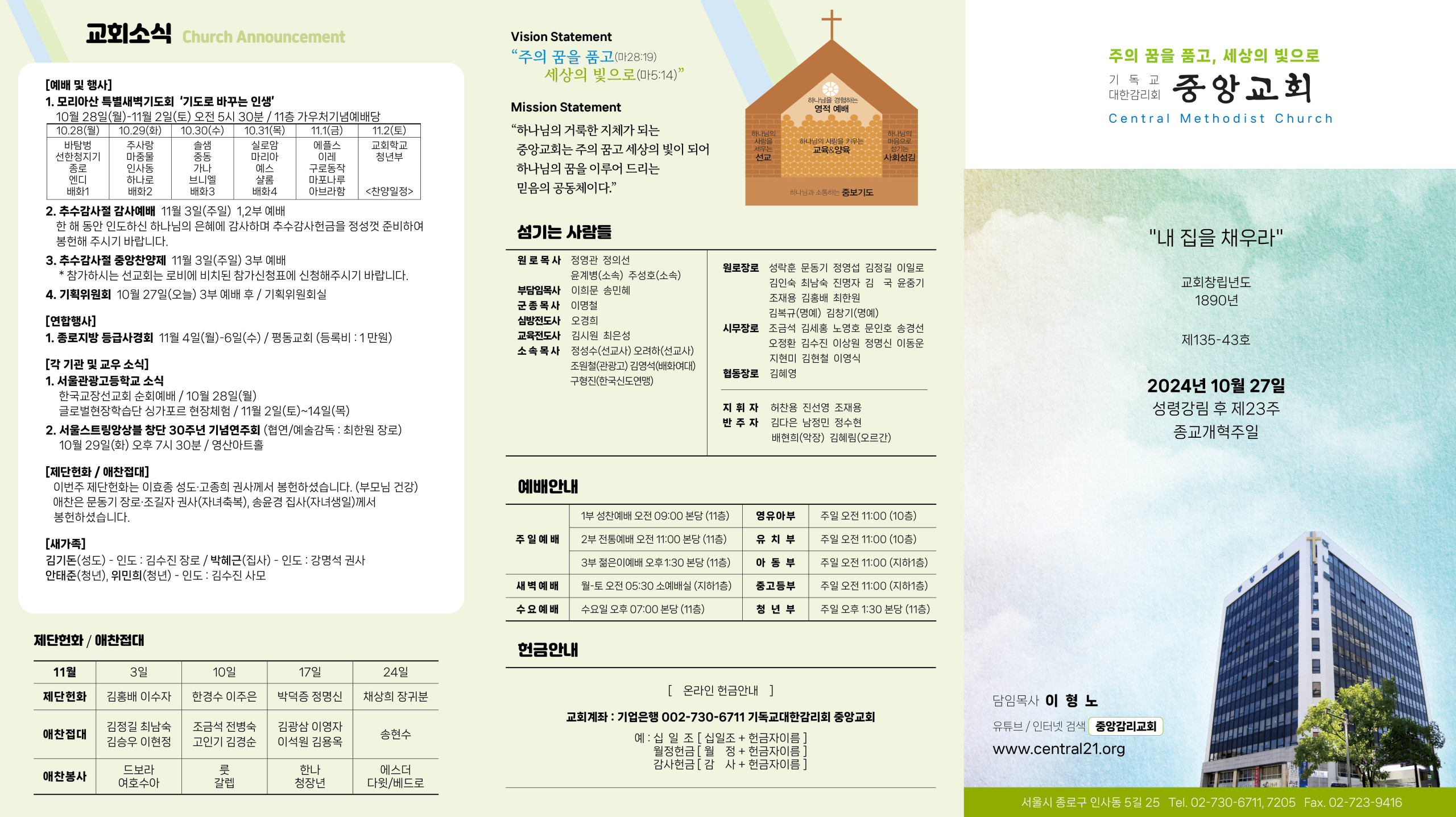 교회소식 교회소식주보 교회소식 주보 교회소식주보 2024년 10월 27일 주일 주보 2024-10-26 오려하 첨부파일 KakaoTalk_20241025_175719424.jpg KakaoTalk_20241025_175722872.jpg 목록 이전 :: 2024년 10월 20일 주... 2024년 11월 3일 주일 :: 다음