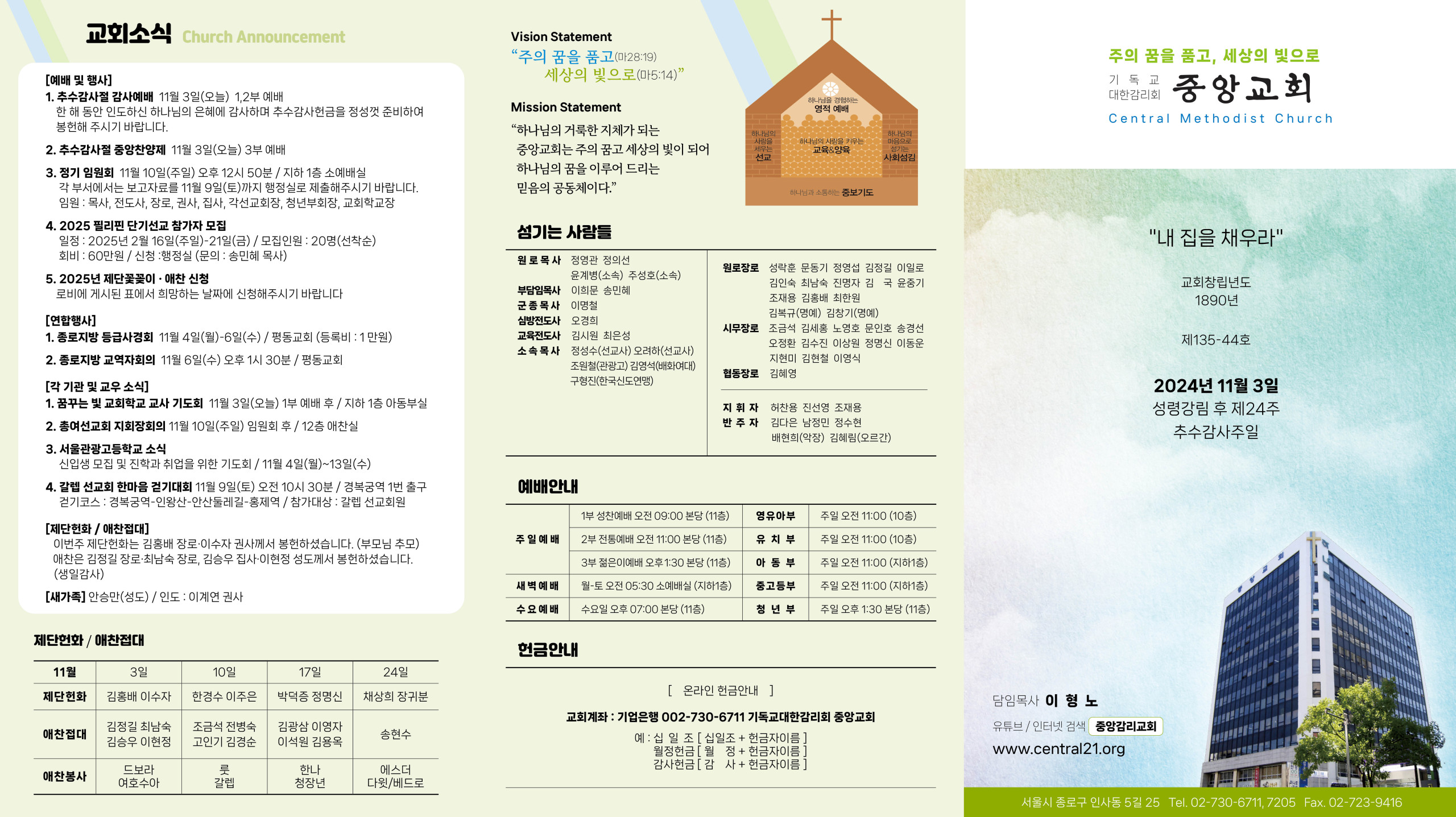 교회소식 교회소식주보 교회소식 주보 교회소식주보 2024년 11월 3일 주일 주보 2024-11-03 오려하 첨부파일 KakaoTalk_20241025_175719424.jpg KakaoTalk_20241101_183426843.jpg KakaoTalk_20241101_183421012.jpg 목록 이전 :: 2024년 10월 27일 주... 2024년 11월 10일 주... :: 다음