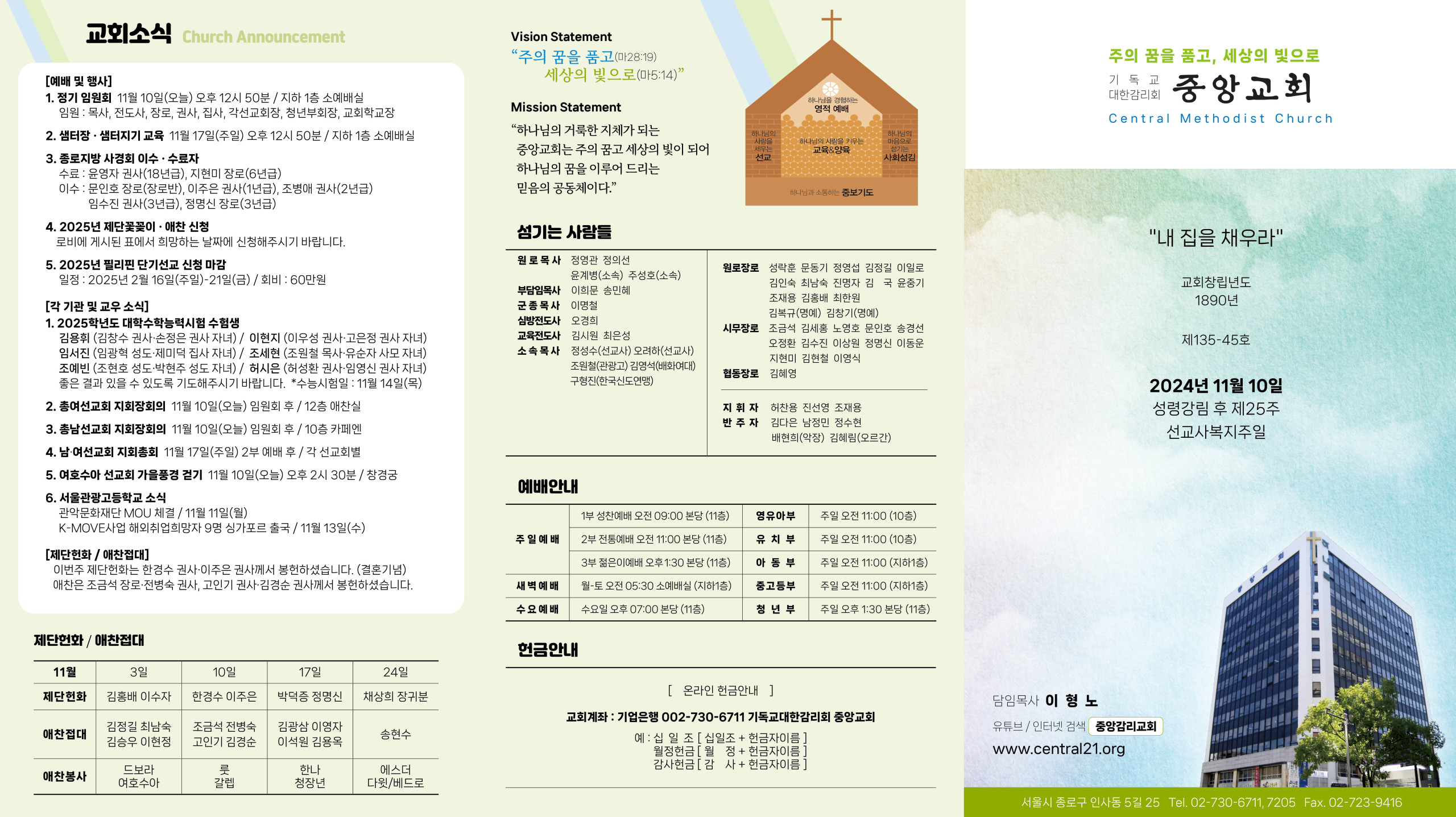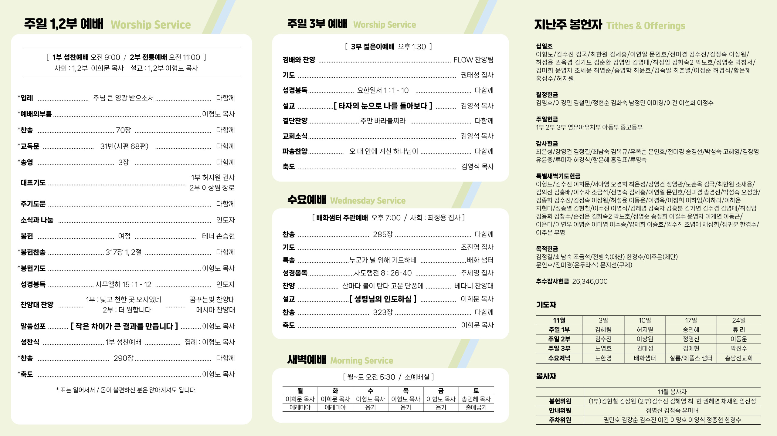 교회소식 교회소식주보 교회소식 주보 교회소식주보 2024년 11월 10일 주일 주보 2024-11-09 오려하 첨부파일 KakaoTalk_20241109_102653783.jpg KakaoTalk_20241109_102659202.jpg 목록 이전 :: 2024년 11월 3일 주일 2024년 11월 17일 주... :: 다음