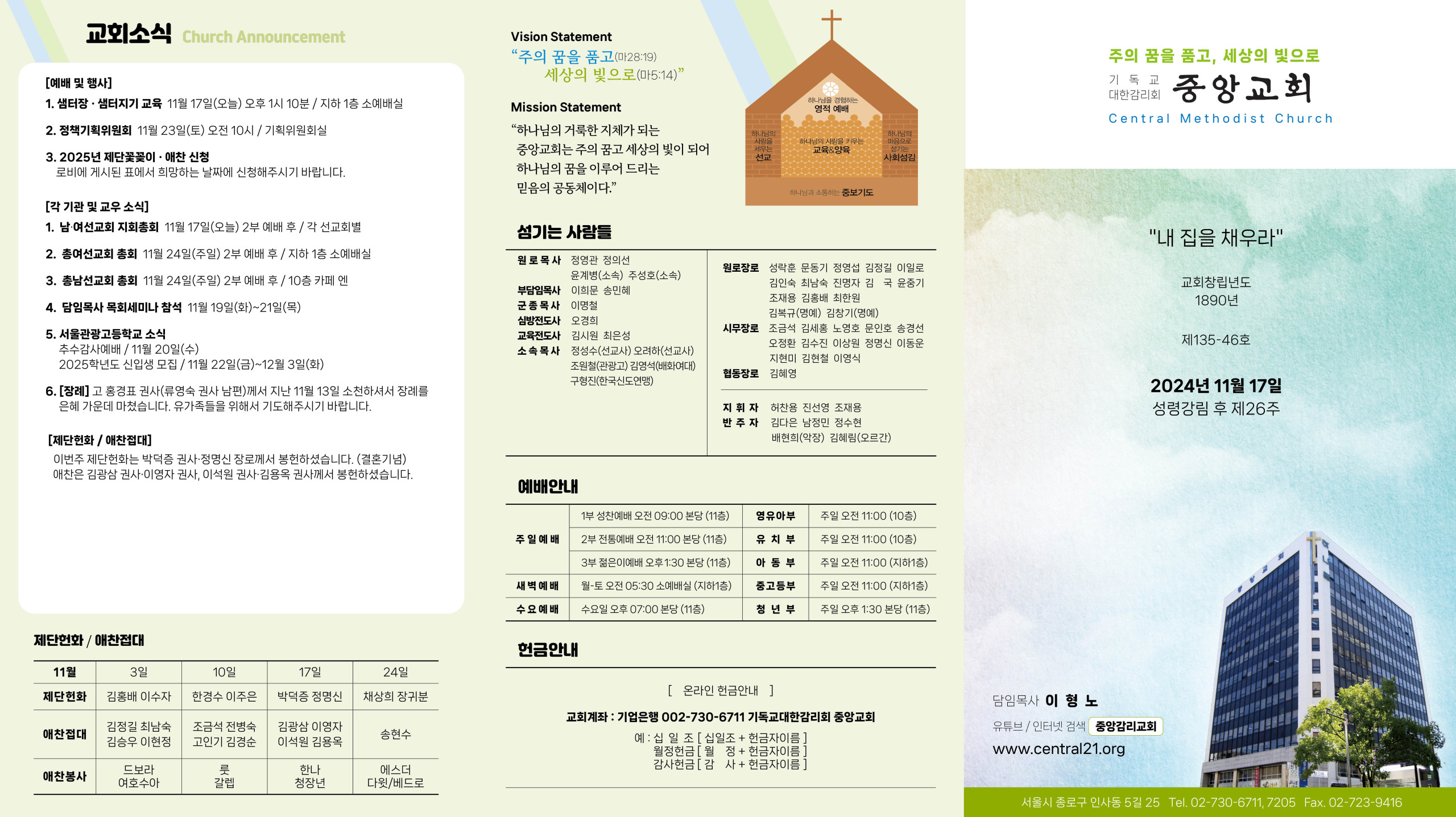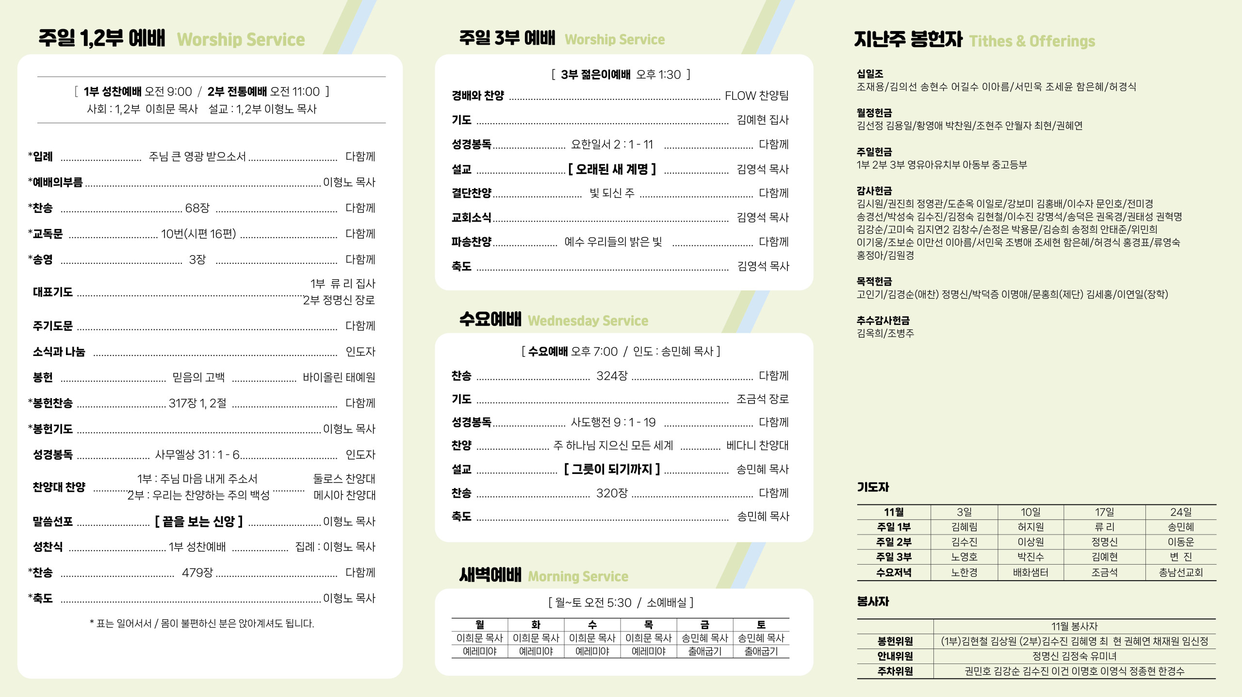 교회소식 교회소식주보 교회소식 주보 교회소식주보 2024년 11월 17일 주일 주보 2024-11-16 오려하 첨부파일 KakaoTalk_20241116_114924761.jpg KakaoTalk_20241116_114928344.jpg 목록 이전 :: 2024년 11월 10일 주... 2024년 11월 24일 주... :: 다음