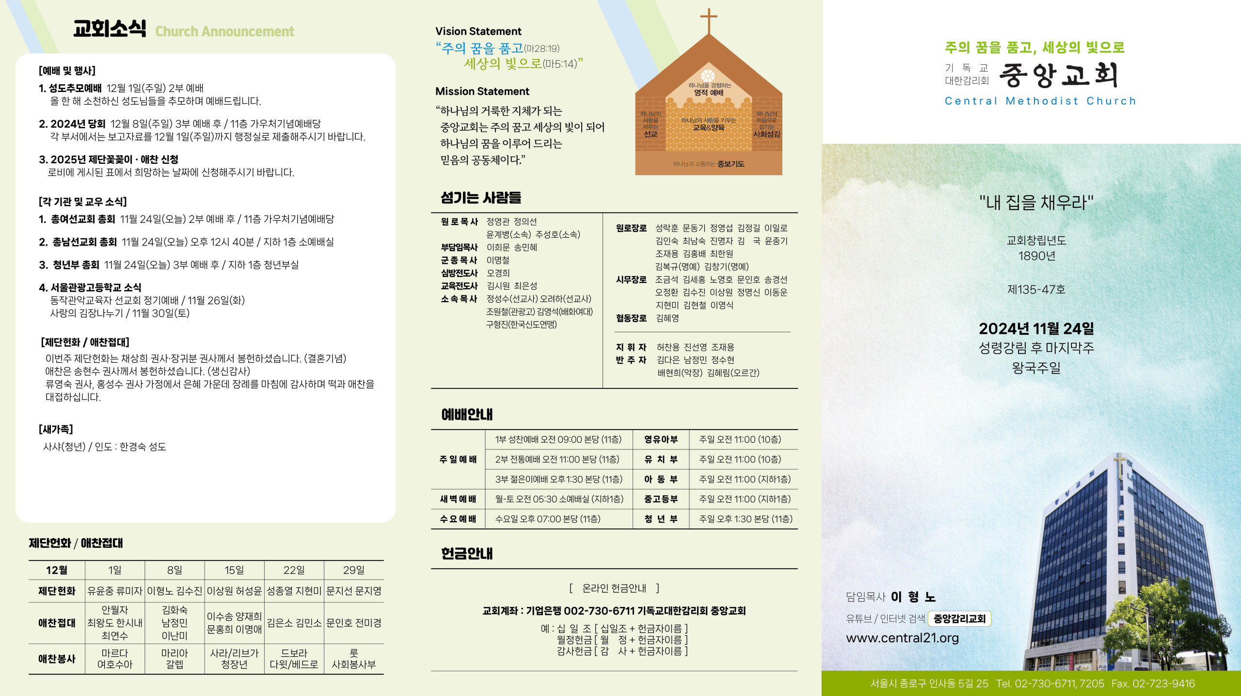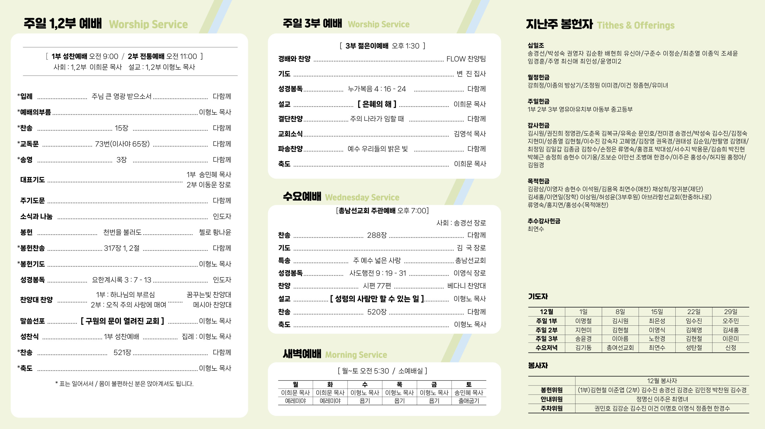 교회소식 교회소식주보 교회소식 주보 교회소식주보 2024년 11월 24일 주일 주보 2024-11-23 오려하 첨부파일 KakaoTalk_20241123_093127953.jpg KakaoTalk_20241123_093225224.jpg 목록 이전 :: 2024년 11월 17일 주... 2024년 12월 1일 주일 :: 다음