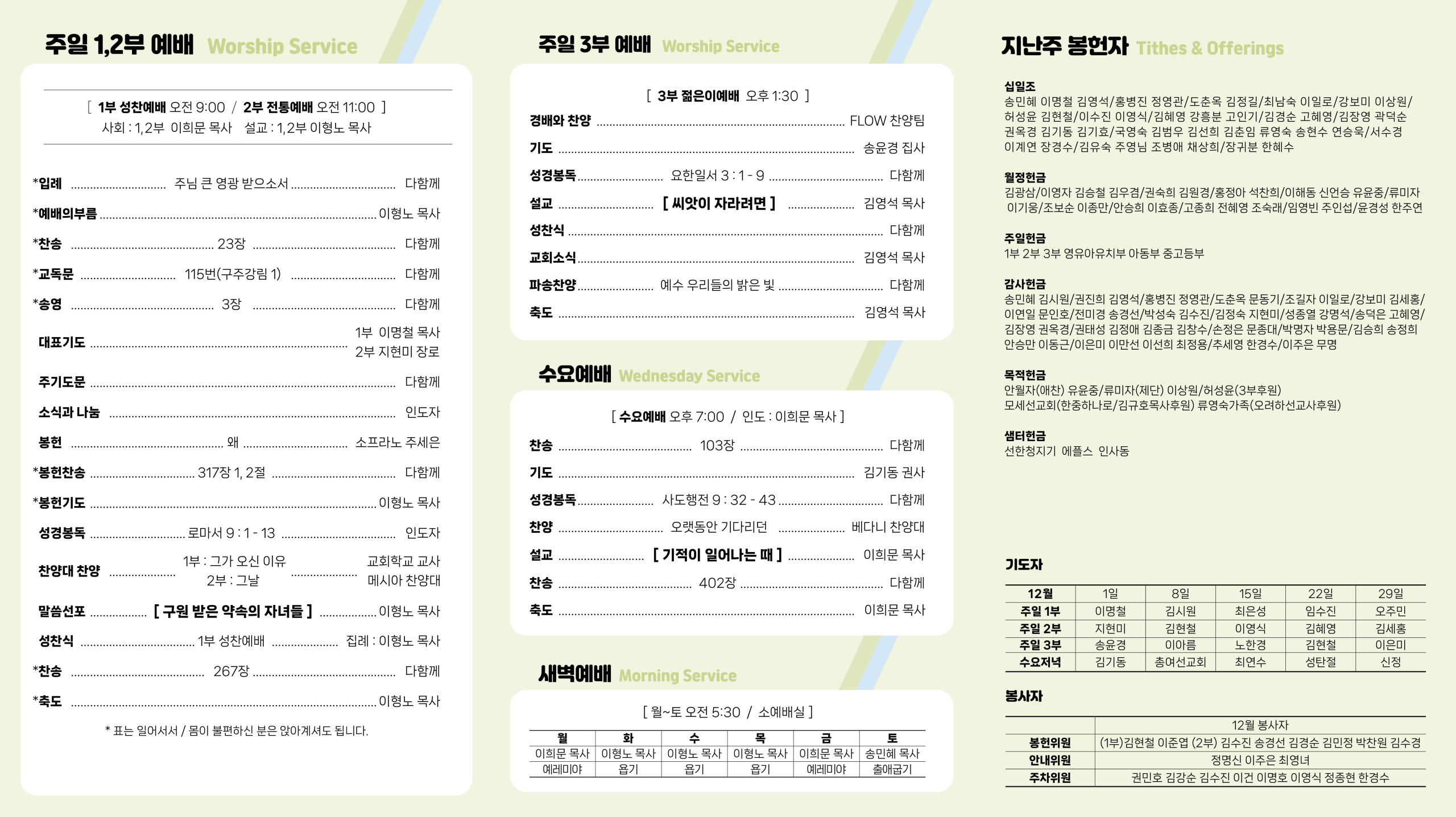 교회소식 교회소식주보 교회소식 주보 교회소식주보 2024년 12월 1일 주일 주보 2024-11-30 오려하 첨부파일 KakaoTalk_20241130_095210733.jpg KakaoTalk_20241130_095215922.jpg 목록 이전 :: 2024년 11월 24일 주... 2024년 12월 8일 주일 :: 다음