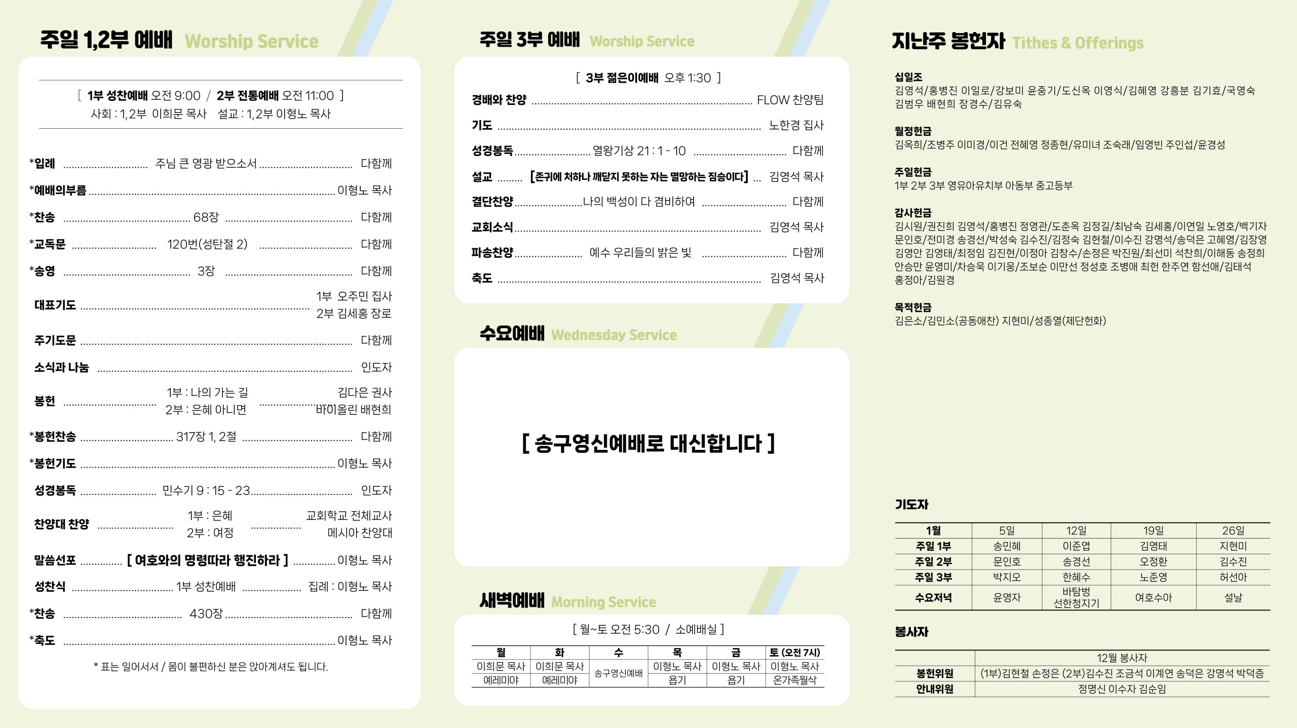 교회소식 교회소식주보 교회소식 주보 교회소식주보 2024년 12월 29일 주일 주보 2024-12-28 오려하 첨부파일 KakaoTalk_20230108_190108275_05.jpg KakaoTalk_20230108_190108275_06.jpg KakaoTalk_20241228_113639440.jpg KakaoTalk_20241228_113643853.jpg 목록 이전 :: 2024년 12월 22일 주... 2025년 1월 5일 주일 :: 다음