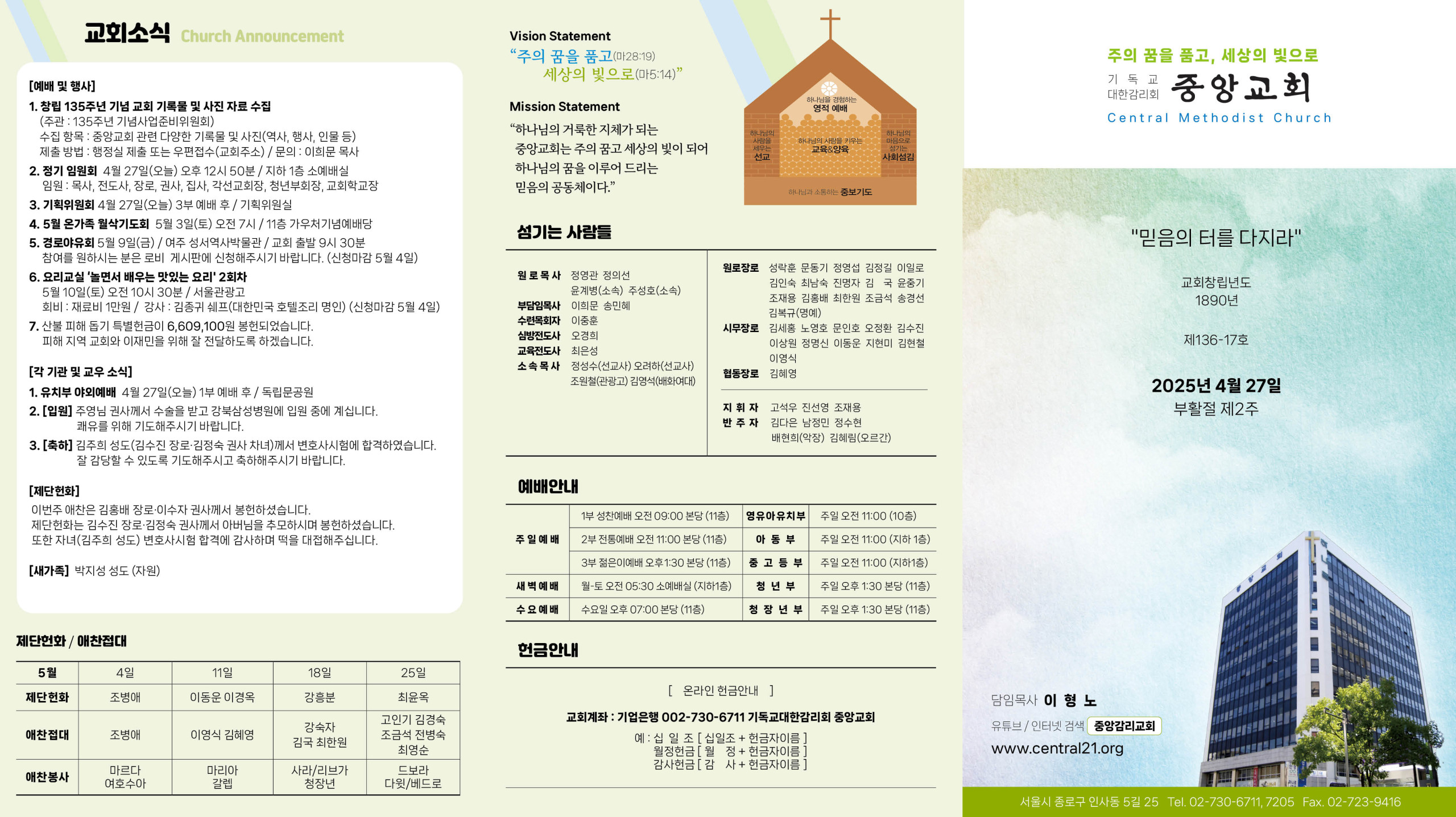 교회소식 교회소식주보 교회소식 주보 교회소식주보 2025년 4월 27일 주일 주보 2025-04-26 이희문 첨부파일 KakaoTalk_20250426_101201287.jpg KakaoTalk_20250426_101156916.jpg 목록 이전 :: 2025년 4월 20일 주일 2025년 5월 4일 주일 :: 다음