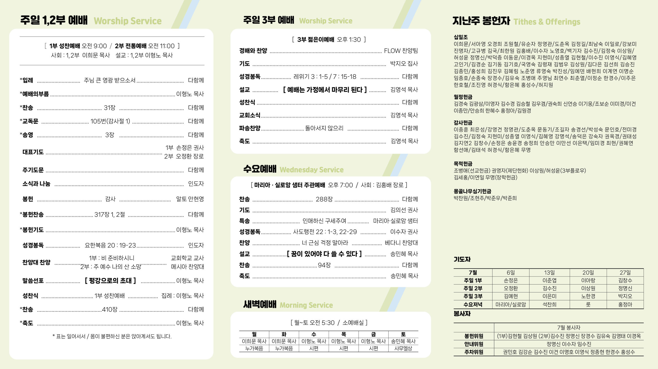 교회소식 교회소식주보 교회소식 주보 교회소식주보 2025년 7월 6일 주일 주보 2025-07-05 이희문 첨부파일 KakaoTalk_20250704_164350643.jpg KakaoTalk_20250704_164354656.jpg 목록 이전 :: 2025년 6월 29일 주일 2025년 7월 13일 주일 :: 다음
