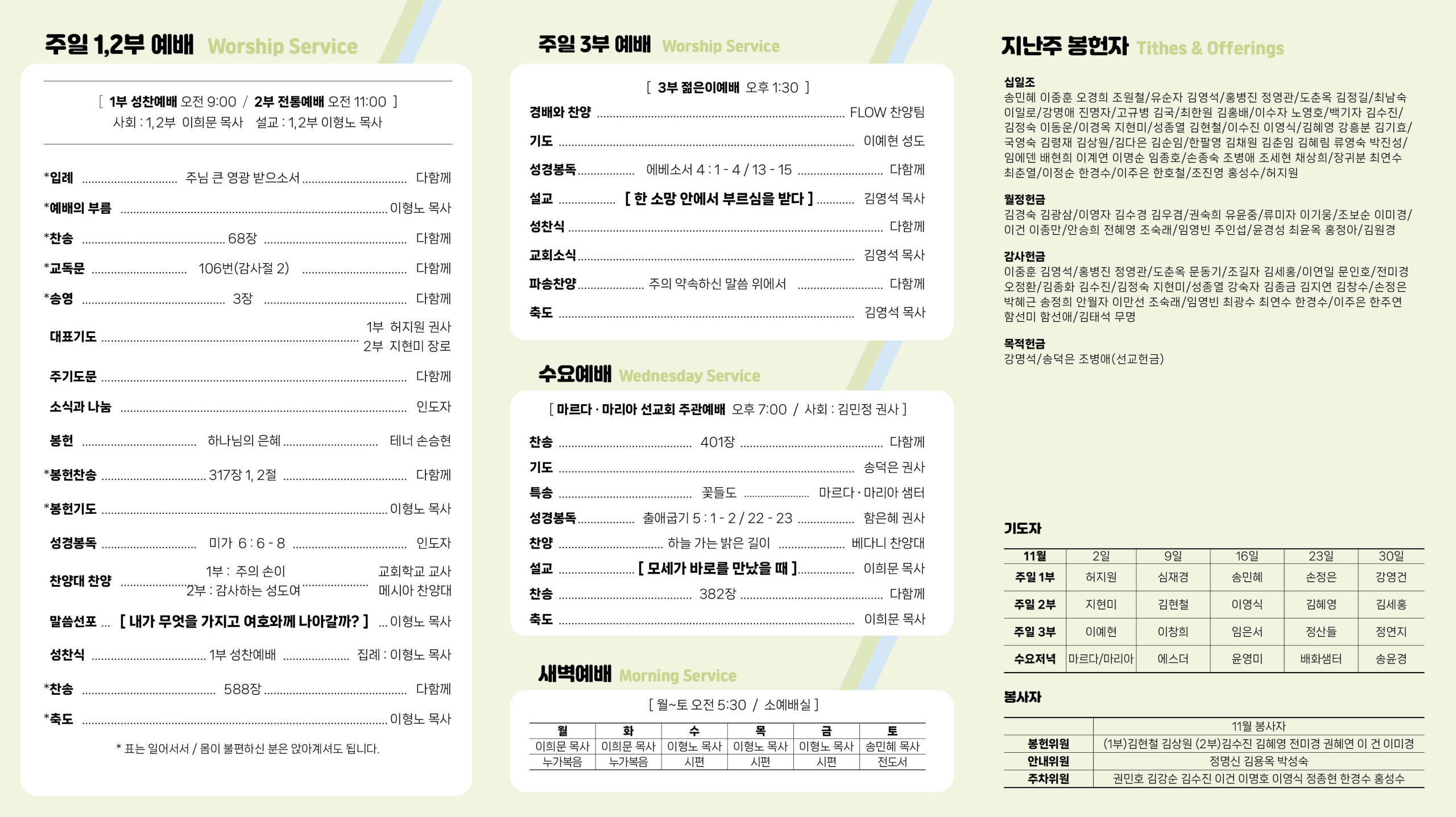 교회소식 교회소식주보 교회소식 주보 교회소식주보 2025년 11월 2일 주일 주보 2025-11-01 이희문 첨부파일 KakaoTalk_20251031_180159291.jpg KakaoTalk_20251031_180202987.jpg 목록 이전 :: 2025년 10월 26일 주... 2025년 11월 9일 주일 :: 다음