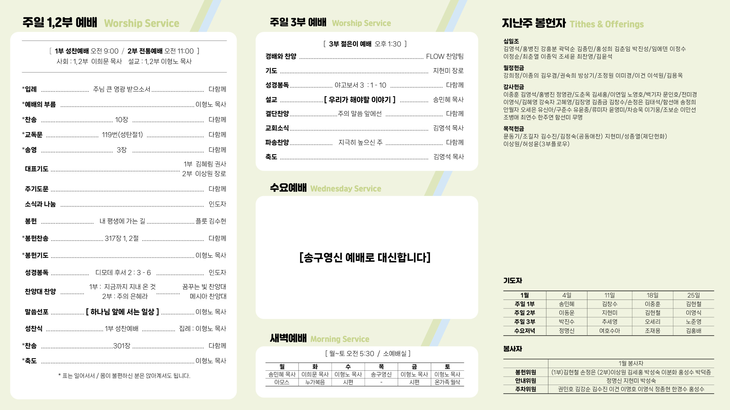 교회소식 교회소식주보 교회소식 주보 교회소식주보 2025년 12월 28일 주일 주보 2025-12-23 이중훈 첨부파일 20251228.jpg 202512282.jpg 목록 이전 :: 2025년 12월 21일 주... 2026년 1월 4일 주일 :: 다음
