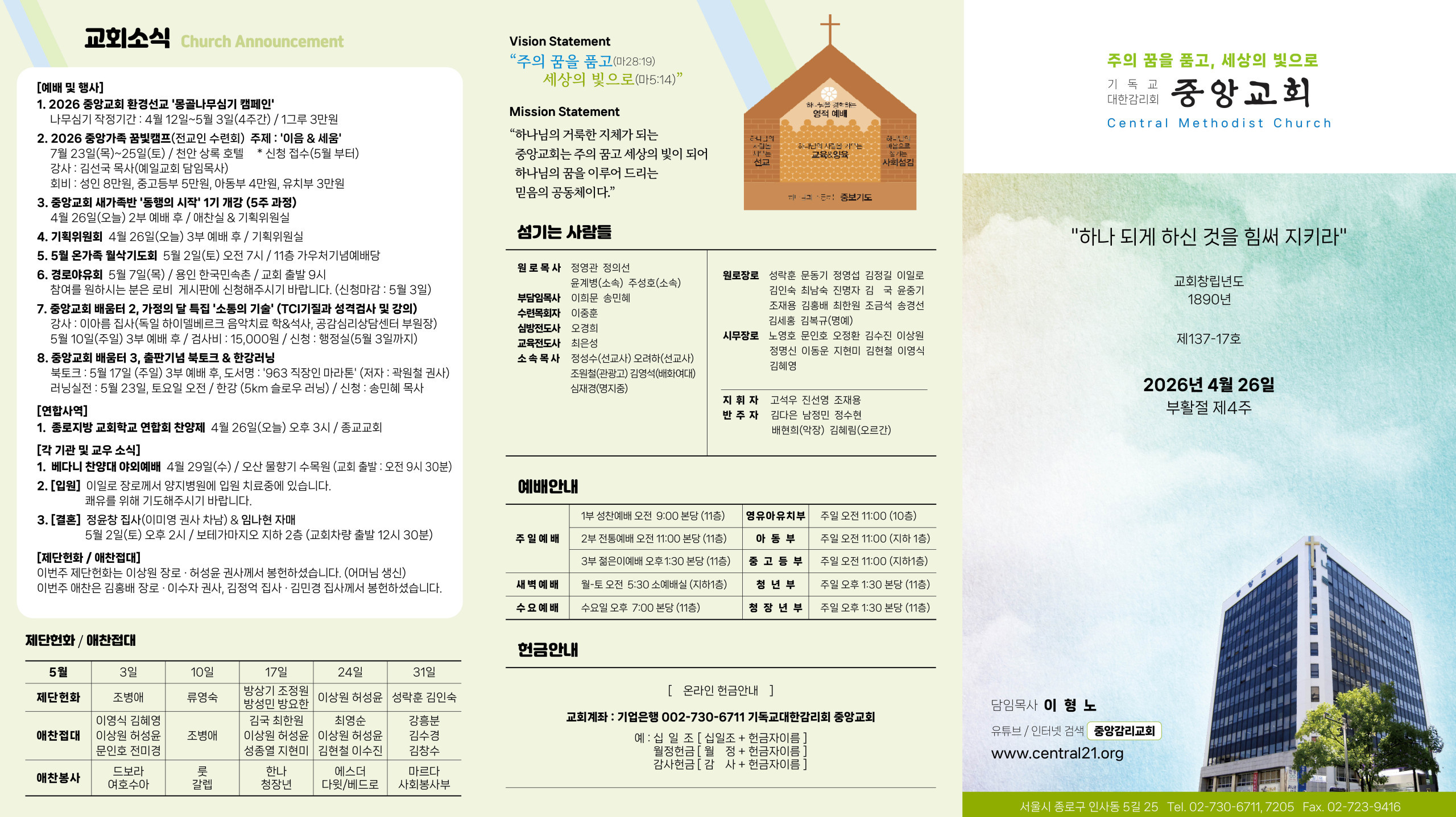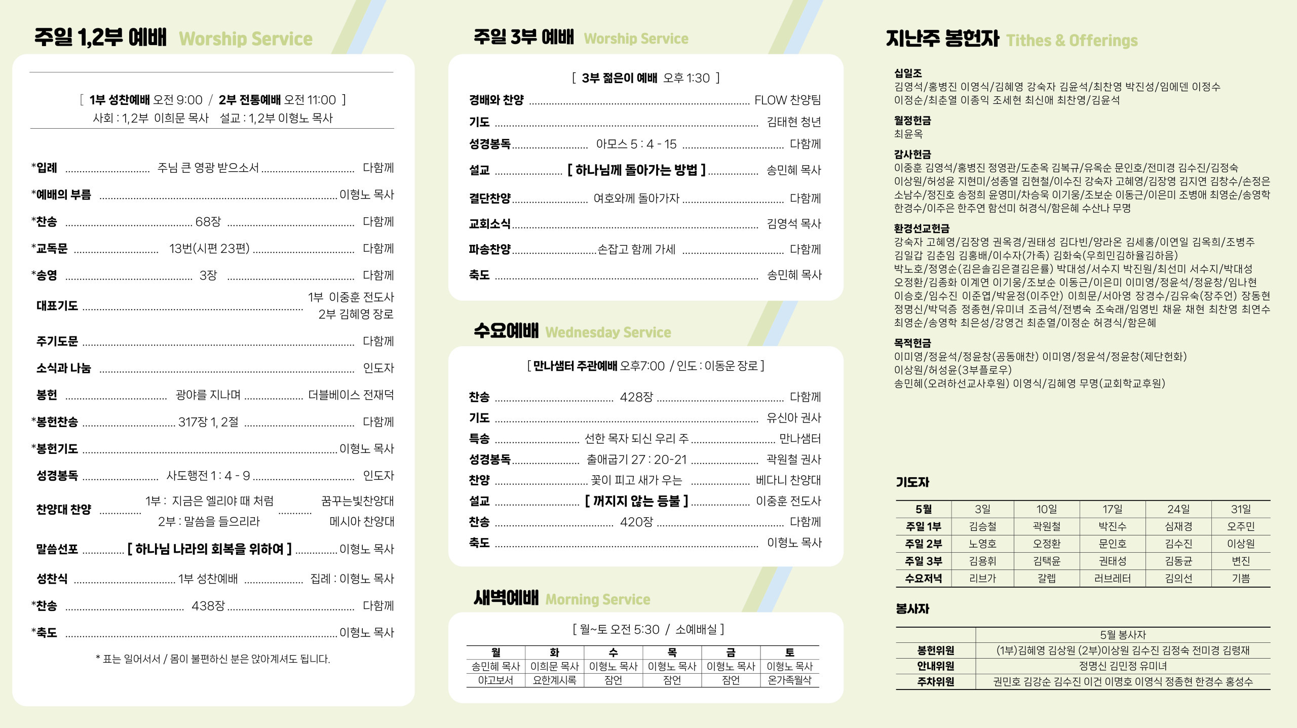 교회소식 교회소식주보 교회소식 주보 교회소식주보 2026년 4월 26일 주일 주보 2026-04-22 이중훈 첨부파일 20260426.jpg 202604262.jpg 목록 이전 :: 2026년 4월 19일 주일
